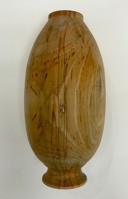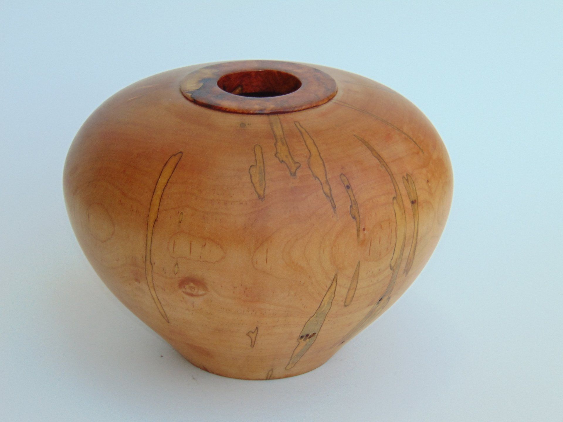 Subsequently, he took an interest in woodworking projects around the house, thereby accumulating many tools. This included a wood lathe. “The lathe has given me an opportunity to gather wood, usually wood from an already fallen tree, and bring it to life. Wood considered by furniture craftsmen and others to be useless and undesirable is often prized by the wood turner.” From the beginning, Wayne decided to learn the craft on his own rather than assimilating other styles by taking classes or visiting expositions.